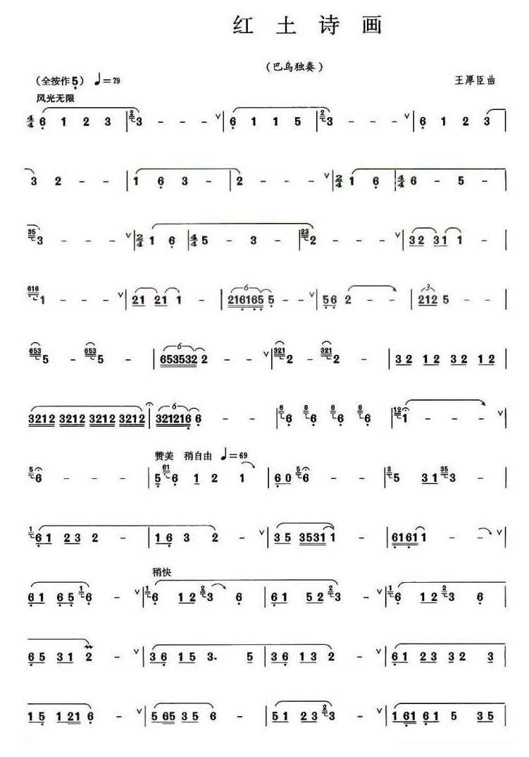 巴乌乐谱《红土诗画》简谱五线谱附歌词是乐器资源网于2017年04月10日 17:10:26整理更新,内容收录在巴乌乐谱栏目;乐器资源网免费分享专业、准确、规范、高清的巴乌乐谱简谱五线谱歌词等电子版资料,欢迎在线免费下载;乐器资源网无需注册会员,即可直接免费下载各类乐器学习相关资源。