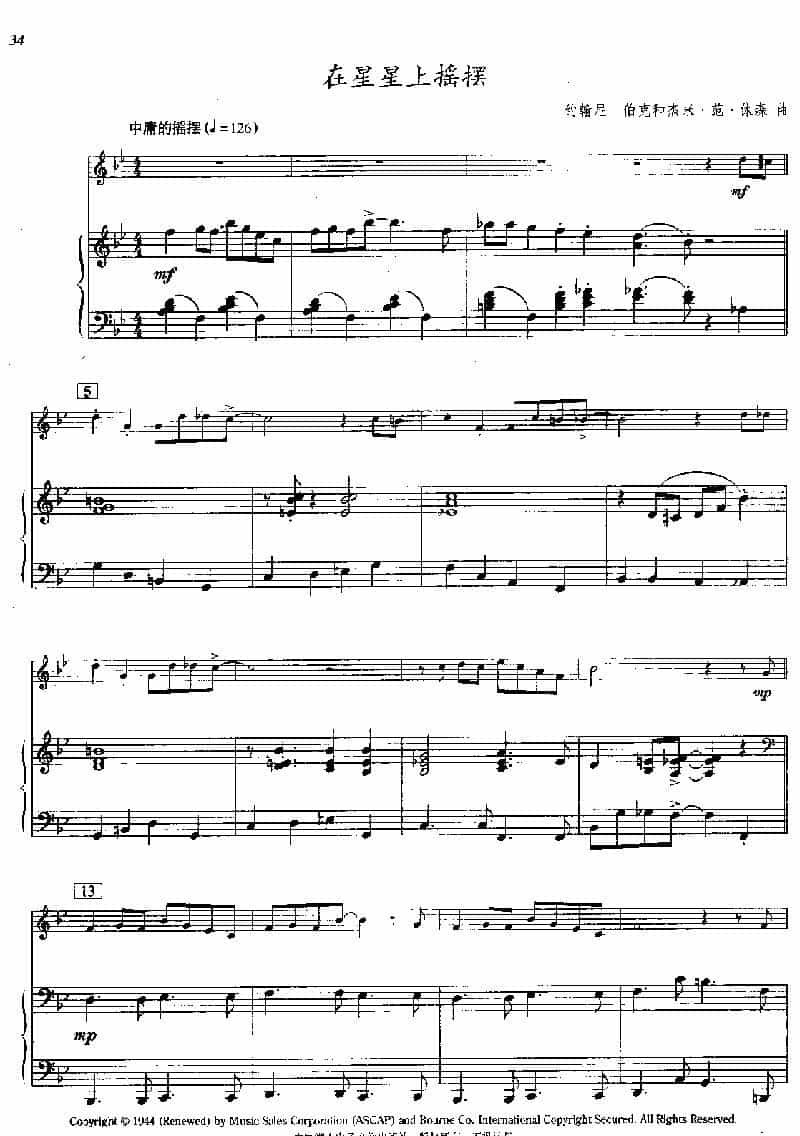 长笛爵士乐曲谱:在星星上摇摆简谱五线谱附歌词是乐器资源网于2014年03月20日 20:27:10整理更新,内容收录在长笛乐谱栏目;乐器资源网免费分享专业、准确、规范、高清的长笛乐谱简谱五线谱歌词等电子版资料,欢迎在线免费下载;乐器资源网无需注册会员,即可直接免费下载各类乐器学习相关资源。