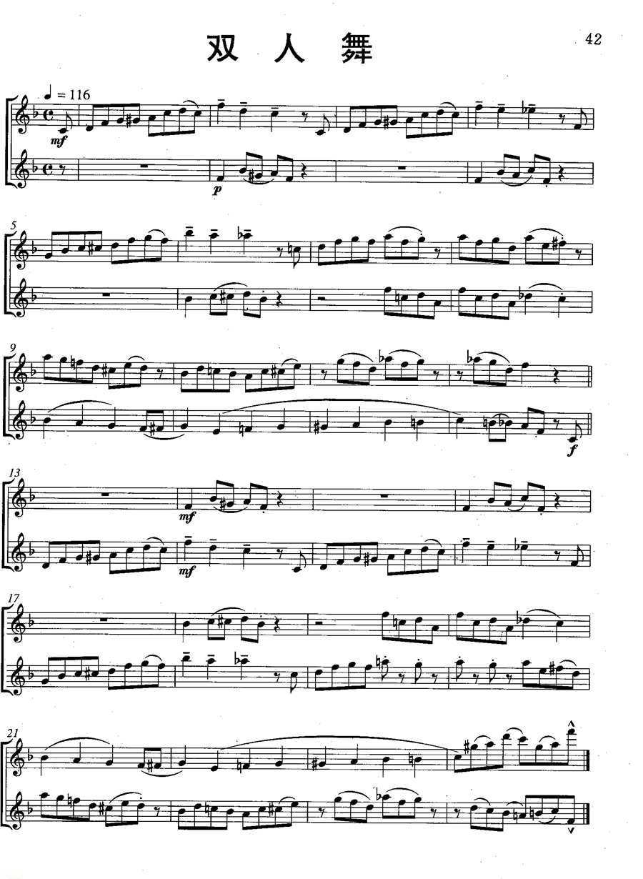 长笛二重奏曲谱:双人舞 Duo Dance简谱五线谱附歌词是乐器资源网于2014年03月21日 22:35:10整理更新,内容收录在长笛乐谱栏目;乐器资源网免费分享专业、准确、规范、高清的长笛乐谱简谱五线谱歌词等电子版资料,欢迎在线免费下载;乐器资源网无需注册会员,即可直接免费下载各类乐器学习相关资源。