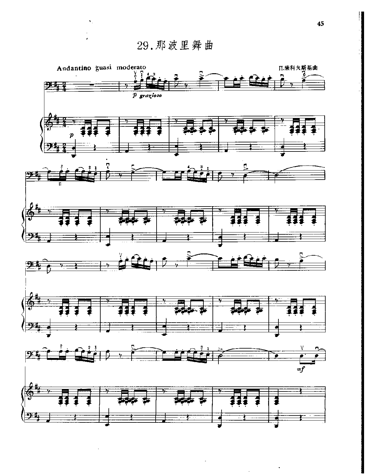 大提琴练习曲【那波里舞曲】柴科夫斯基曲简谱五线谱附歌词是乐器资源网于2017年03月20日 17:42:44整理更新,内容收录在大提琴乐谱栏目;乐器资源网免费分享专业、准确、规范、高清的大提琴乐谱简谱五线谱歌词等电子版资料,欢迎在线免费下载;乐器资源网无需注册会员,即可直接免费下载各类乐器学习相关资源。