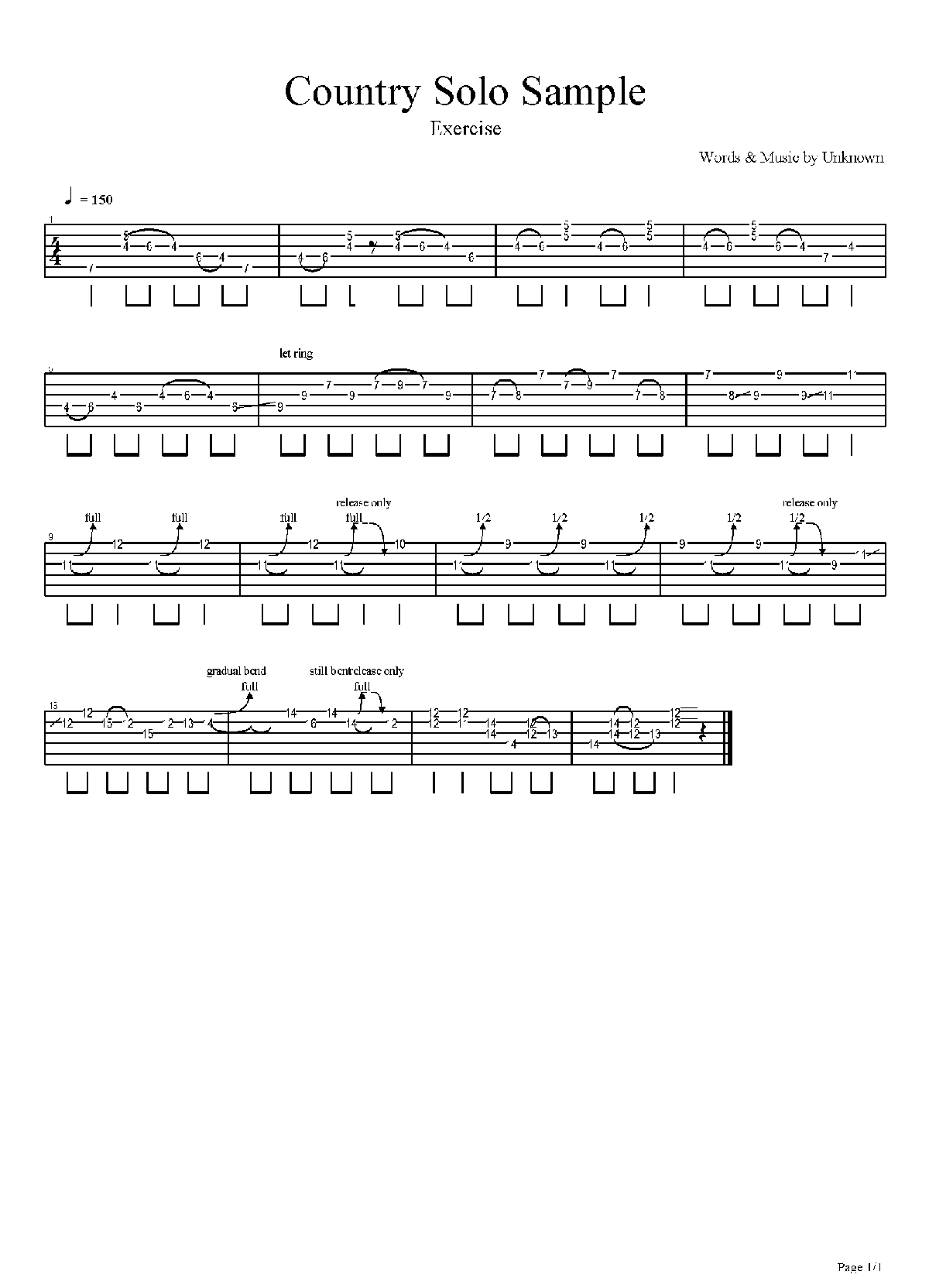 电吉他练习谱《Country Licks - Country Solo #34》简谱五线谱附歌词是乐器资源网于2017年04月01日 18:17:43整理更新,内容收录在电吉他乐谱栏目;乐器资源网免费分享专业、准确、规范、高清的电吉他乐谱简谱五线谱歌词等电子版资料,欢迎在线免费下载;乐器资源网无需注册会员,即可直接免费下载各类乐器学习相关资源。