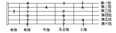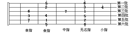4、把位确认以后,左手指法按上图,不可以跨品。我们以食指为基准就可以很轻松的弹出la型的音阶。