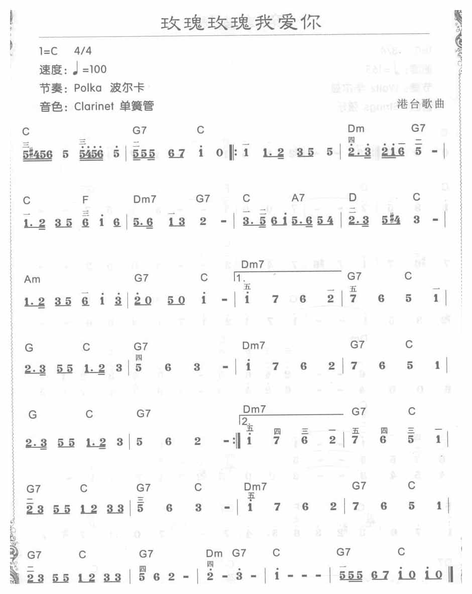 电子琴C大调a小调乐曲【玫瑰玫瑰我爱你】简谱带和弦简谱五线谱附歌词是乐器资源网于2017年03月22日 22:40:09整理更新,内容收录在电子琴乐谱栏目;乐器资源网免费分享专业、准确、规范、高清的电子琴乐谱简谱五线谱歌词等电子版资料,欢迎在线免费下载;乐器资源网无需注册会员,即可直接免费下载各类乐器学习相关资源。
