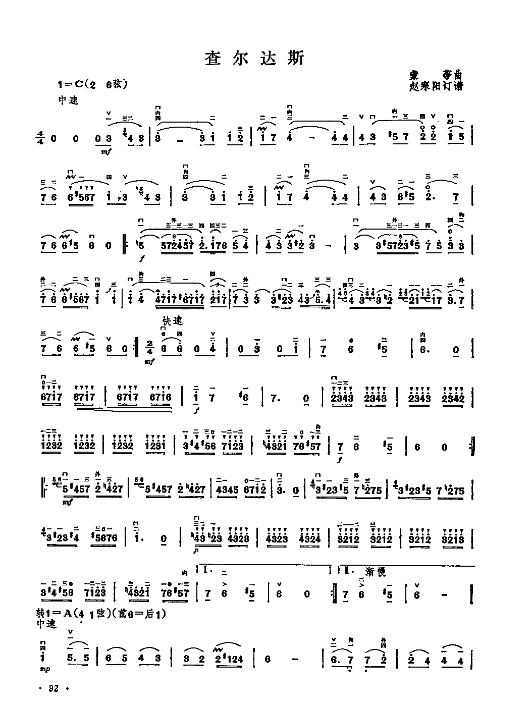 二胡演奏世界名曲100首085【查尔达斯】赵寒阳选编简谱五线谱附歌词是乐器资源网于2015年12月26日 17:13:16整理更新,内容收录在二胡乐谱栏目;乐器资源网免费分享专业、准确、规范、高清的二胡乐谱简谱五线谱歌词等电子版资料,欢迎在线免费下载;乐器资源网无需注册会员,即可直接免费下载各类乐器学习相关资源。