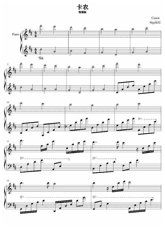 帕赫贝尔 Pachelbel 《卡农》特别版 钢琴谱简谱五线谱附歌词是乐器资源网于2015年01月01日 22:44:07整理更新,内容收录在钢琴乐谱栏目;乐器资源网免费分享专业、准确、规范、高清的钢琴乐谱简谱五线谱歌词等电子版资料,欢迎在线免费下载;乐器资源网无需注册会员,即可直接免费下载各类乐器学习相关资源。