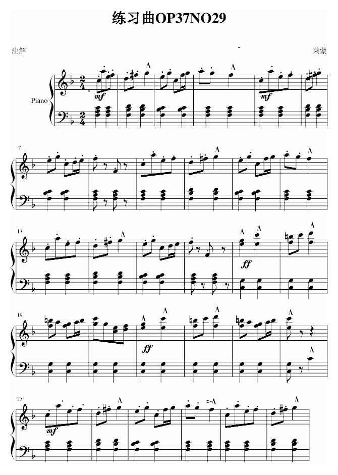 莱蒙 练习曲OP37NO29简谱五线谱附歌词是乐器资源网于2014年11月04日 16:21:52整理更新,内容收录在钢琴乐谱栏目;乐器资源网免费分享专业、准确、规范、高清的钢琴乐谱简谱五线谱歌词等电子版资料,欢迎在线免费下载;乐器资源网无需注册会员,即可直接免费下载各类乐器学习相关资源。