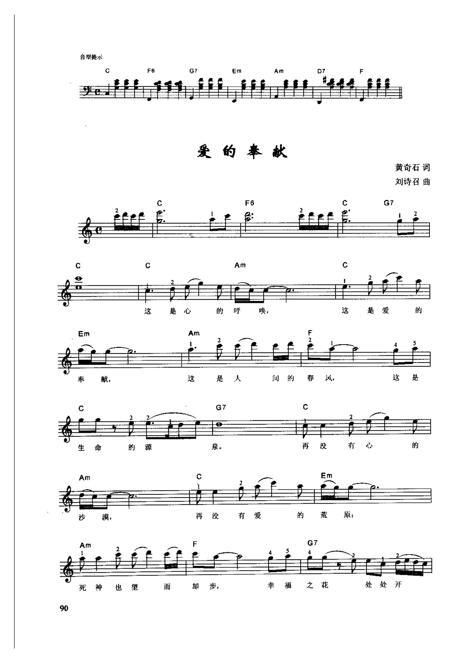 辛笛《钢琴即兴伴奏歌曲108首》之052【爱的奉献】黄奇石 词/刘诗召 曲简谱五线谱附歌词是乐器资源网于2015年10月04日 22:23:42整理更新,内容收录在钢琴乐谱栏目;乐器资源网免费分享专业、准确、规范、高清的钢琴乐谱简谱五线谱歌词等电子版资料,欢迎在线免费下载;乐器资源网无需注册会员,即可直接免费下载各类乐器学习相关资源。