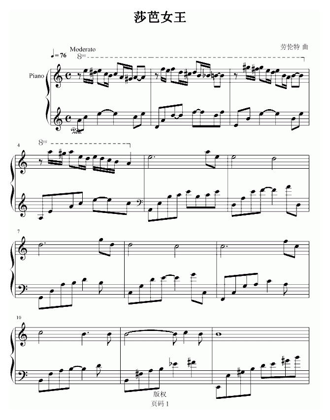 劳伦特 沙巴女王钢琴谱简谱五线谱附歌词是乐器资源网于2014年11月20日 10:51:18整理更新,内容收录在钢琴乐谱栏目;乐器资源网免费分享专业、准确、规范、高清的钢琴乐谱简谱五线谱歌词等电子版资料,欢迎在线免费下载;乐器资源网无需注册会员,即可直接免费下载各类乐器学习相关资源。