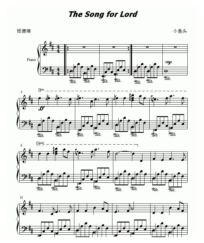 班得瑞-Bandari The Song for Lord_钢琴名人名曲简谱五线谱附歌词是乐器资源网于2014年10月25日 07:14:11整理更新,内容收录在钢琴乐谱栏目;乐器资源网免费分享专业、准确、规范、高清的钢琴乐谱简谱五线谱歌词等电子版资料,欢迎在线免费下载;乐器资源网无需注册会员,即可直接免费下载各类乐器学习相关资源。