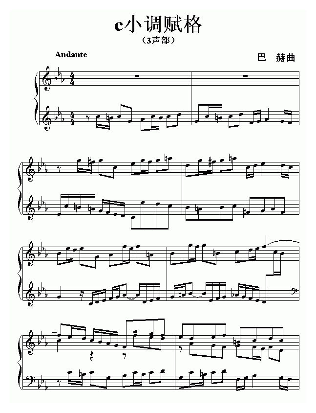 巴赫-P.E.Bach c小调赋格(钢琴名人名曲)简谱五线谱附歌词是乐器资源网于2014年10月26日 08:30:47整理更新,内容收录在钢琴乐谱栏目;乐器资源网免费分享专业、准确、规范、高清的钢琴乐谱简谱五线谱歌词等电子版资料,欢迎在线免费下载;乐器资源网无需注册会员,即可直接免费下载各类乐器学习相关资源。
