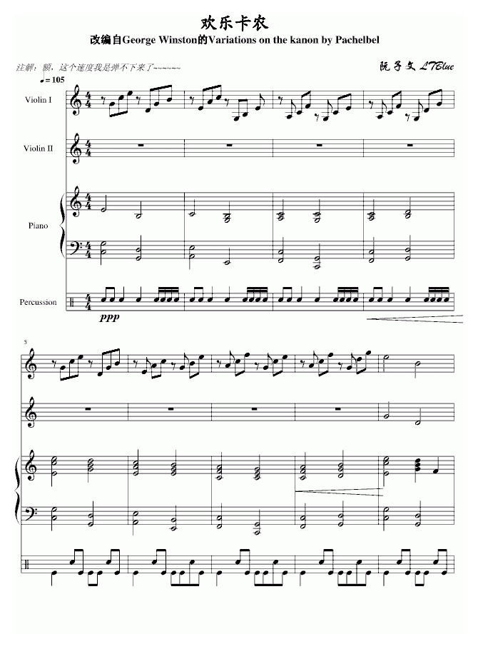 帕赫贝尔 Pachelbel 欢乐卡农 钢琴谱简谱五线谱附歌词是乐器资源网于2014年11月26日 16:33:32整理更新,内容收录在钢琴乐谱栏目;乐器资源网免费分享专业、准确、规范、高清的钢琴乐谱简谱五线谱歌词等电子版资料,欢迎在线免费下载;乐器资源网无需注册会员,即可直接免费下载各类乐器学习相关资源。