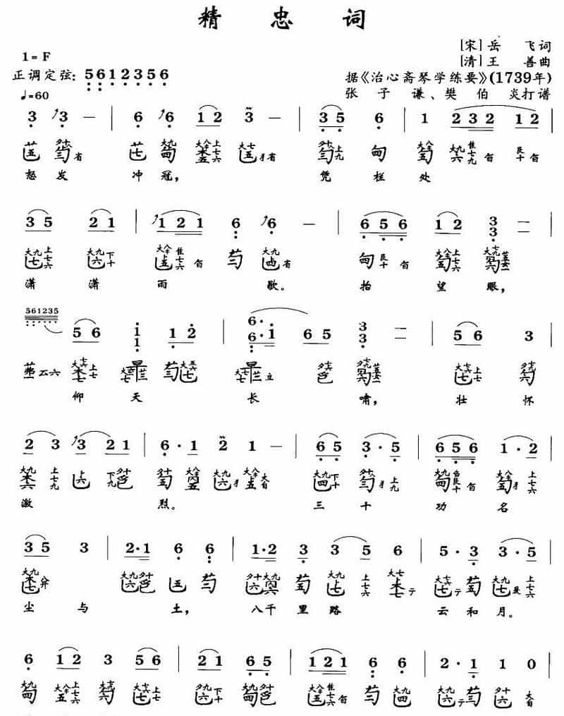 传统古琴谱【精忠词】张子谦/樊伯炎