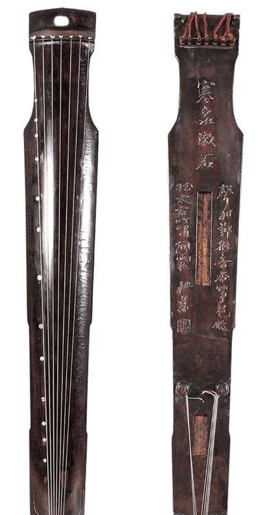 《 独幽.凤嗉式 》 独幽琴是晚唐之作,凤嗉式,长 120.5cm,肩宽 20cm,尾宽 14cm,湖南省博物馆藏 。琴面黑红相间漆,梅花断纹与蛇腹断纹交织,背面牛毛断纹。龙池上方刻『独幽』,池内有『太和丁未』四字(即唐文宗元年,公...