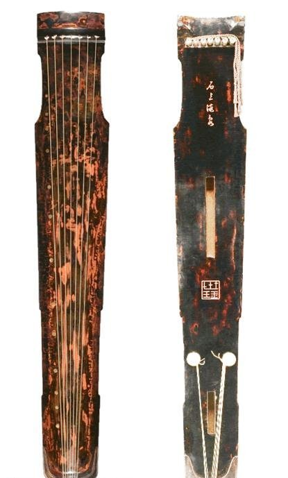 《 独幽.凤嗉式 》 独幽琴是晚唐之作,凤嗉式,长 120.5cm,肩宽 20cm,尾宽 14cm,湖南省博物馆藏 。琴面黑红相间漆,梅花断纹与蛇腹断纹交织,背面牛毛断纹。龙池上方刻『独幽』,池内有『太和丁未』四字(即唐文宗元年,公...