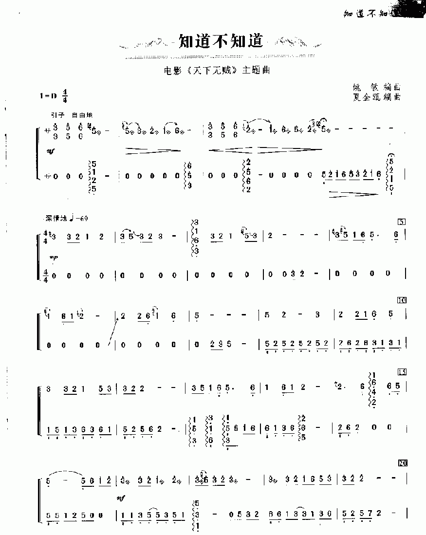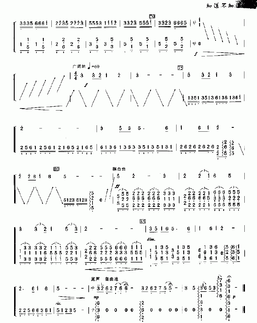 古筝曲谱【知道不知道】简谱五线谱附歌词是乐器资源网于2016年05月08日 22:50:54整理更新,内容收录在古筝乐谱栏目;乐器资源网免费分享专业、准确、规范、高清的古筝乐谱简谱五线谱歌词等电子版资料,欢迎在线免费下载;乐器资源网无需注册会员,即可直接免费下载各类乐器学习相关资源。
