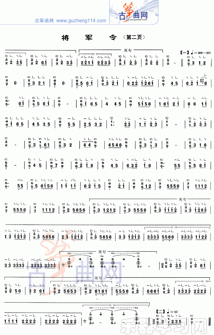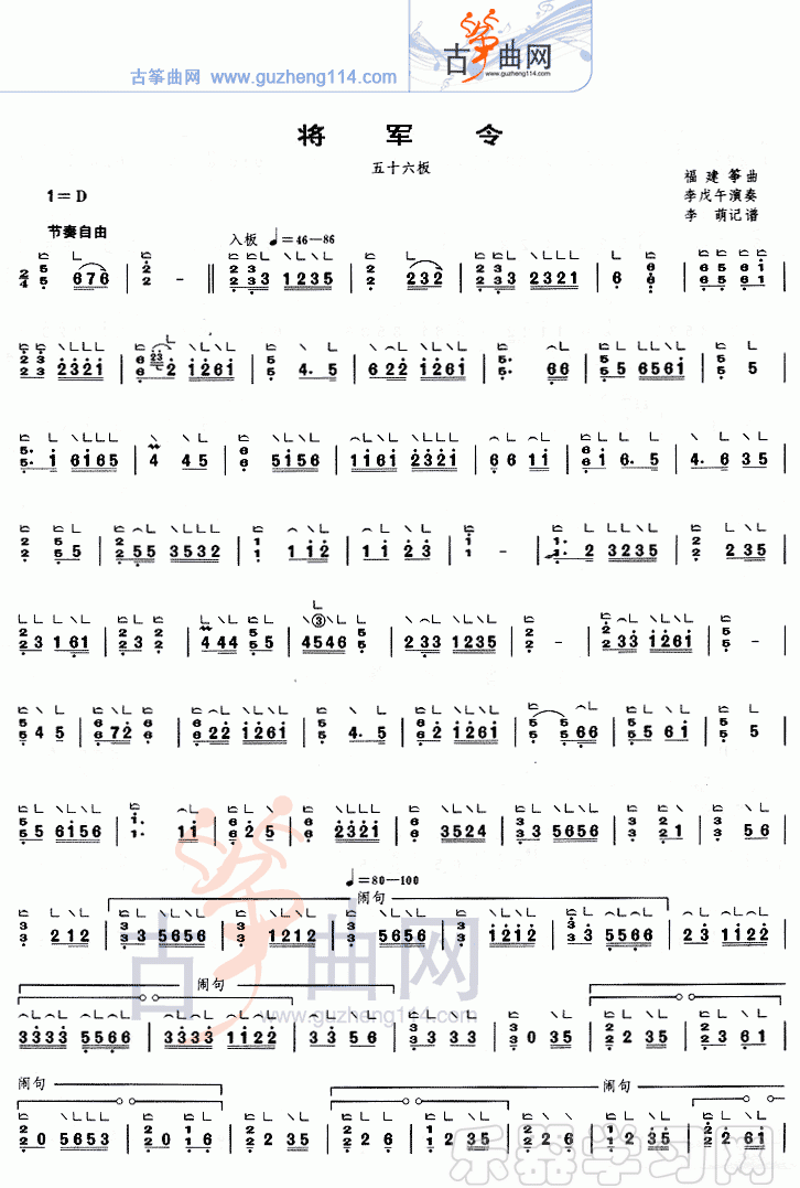 将军令简谱五线谱附歌词是乐器资源网于2012年11月09日 10:41:37整理更新,内容收录在古筝乐谱栏目;乐器资源网免费分享专业、准确、规范、高清的古筝乐谱简谱五线谱歌词等电子版资料,欢迎在线免费下载;乐器资源网无需注册会员,即可直接免费下载各类乐器学习相关资源。