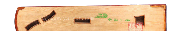 木:外观、音板:好木才有好音,雅韵的器乐人知道,古筝每个部份用木的考究,否则会影响她的音律。音板采梧桐木为料,因其质轻利导音,从古至今大部弹拨乐器都采用这种树木作面板原料。采用梧桐之乡河南兰考泡桐作为音板原料,一级原料面板质轻、纹路清晰均匀、色微米黄;一周左右的泡洗浆液,面板还以原色,再经过一周左右的自然晾干,在耐心的慢慢等待后,她将与雅韵古筝如期相遇。