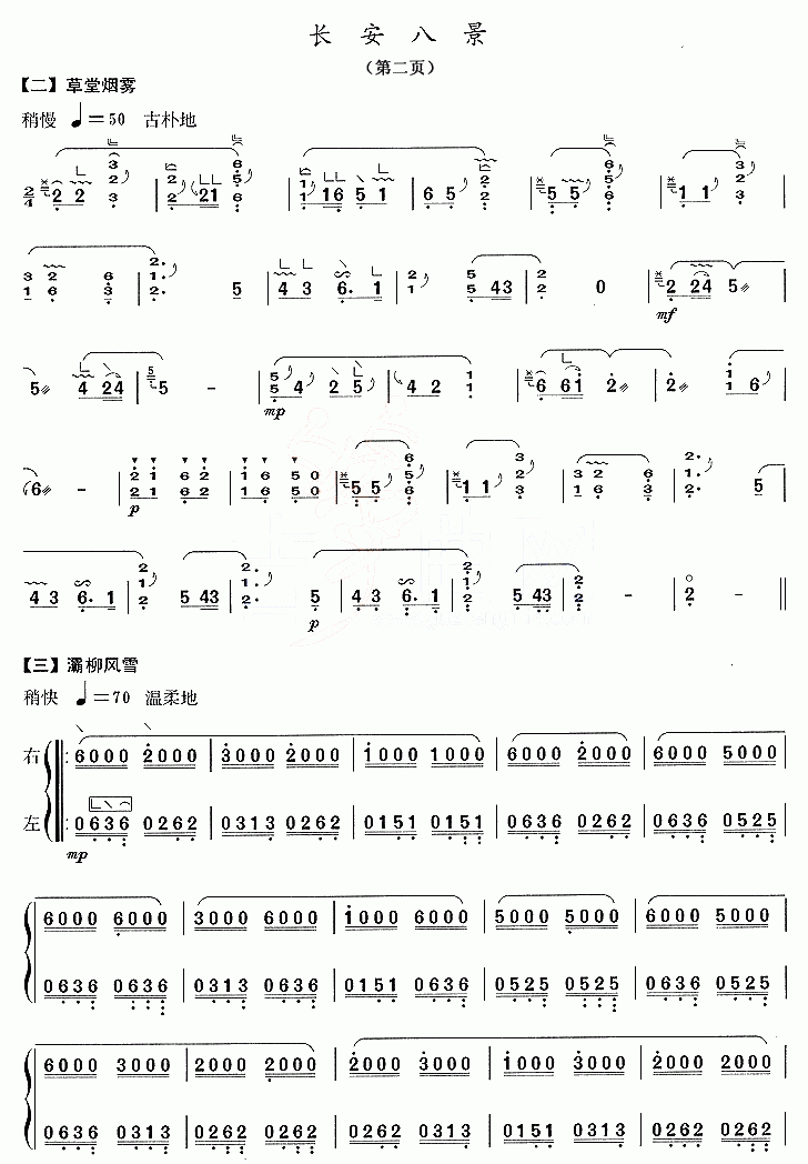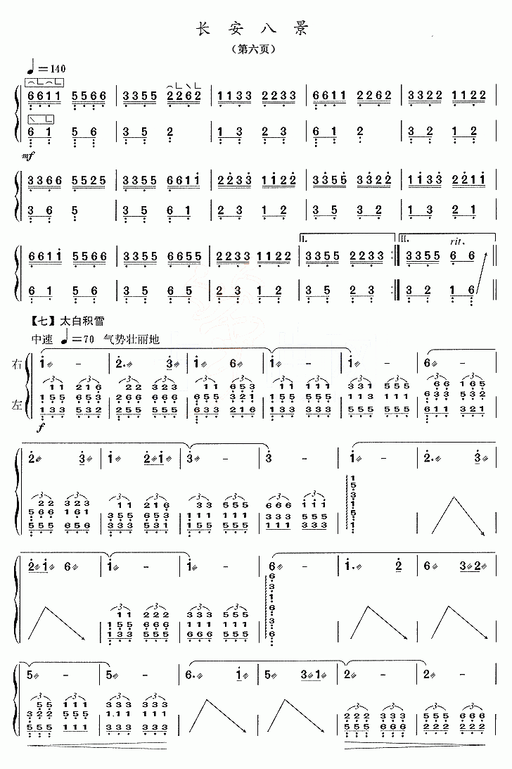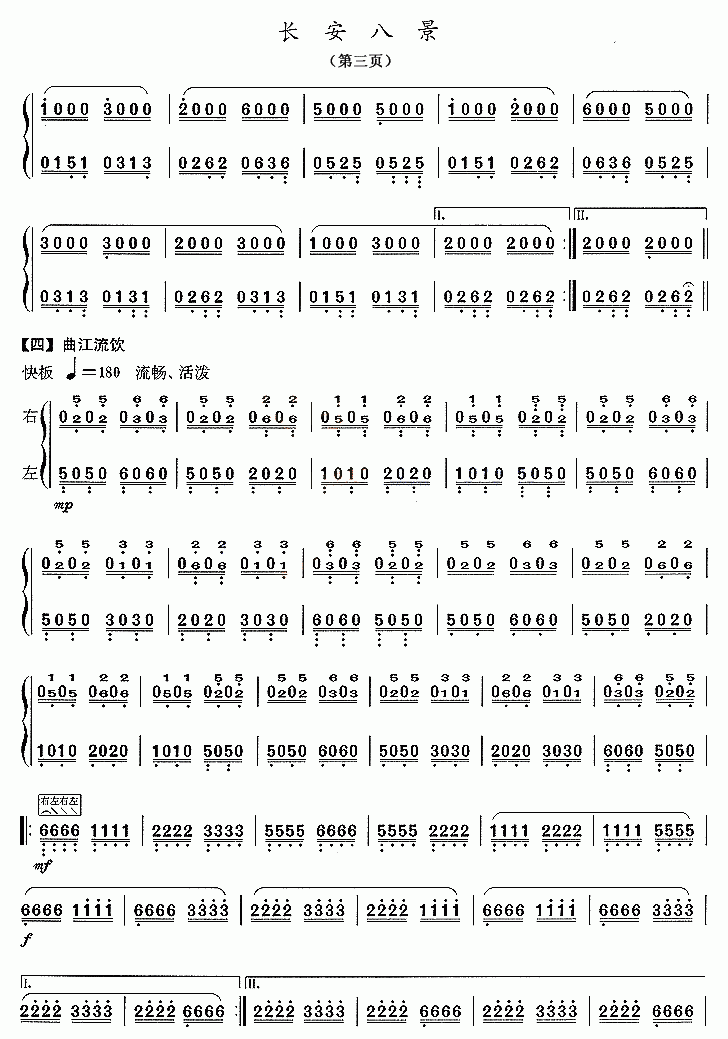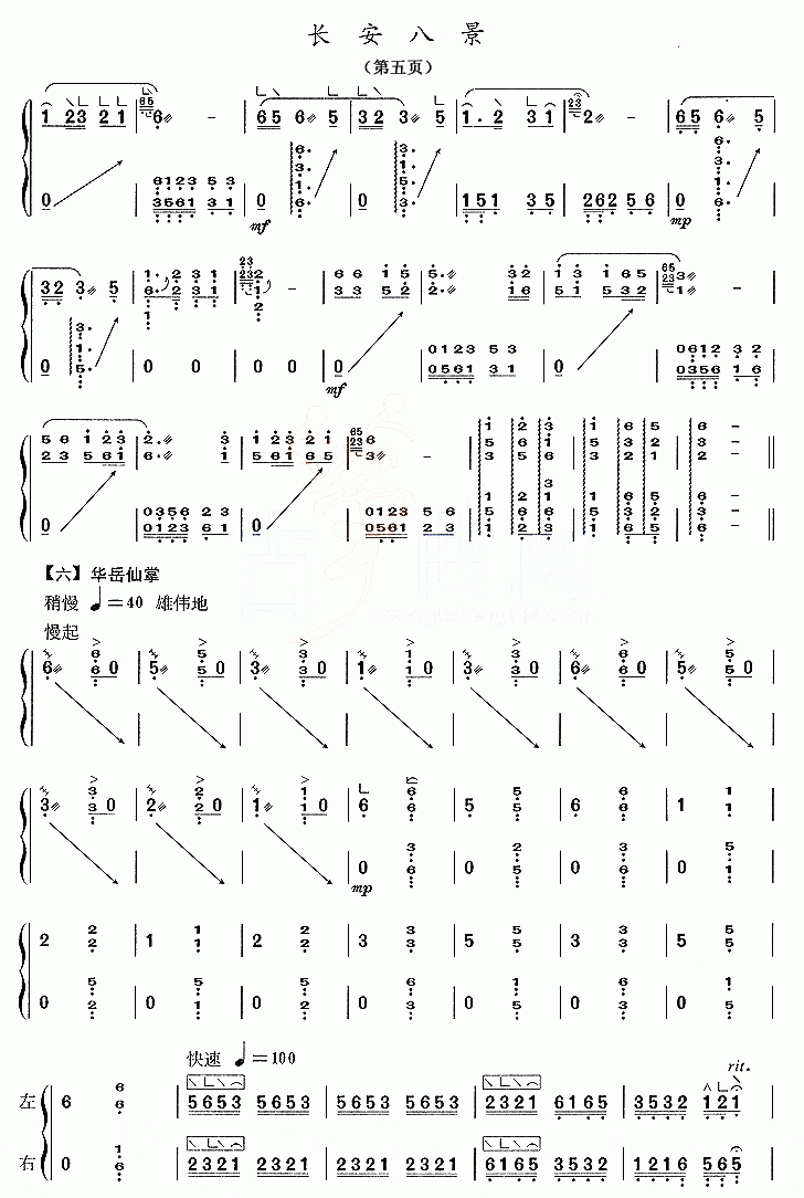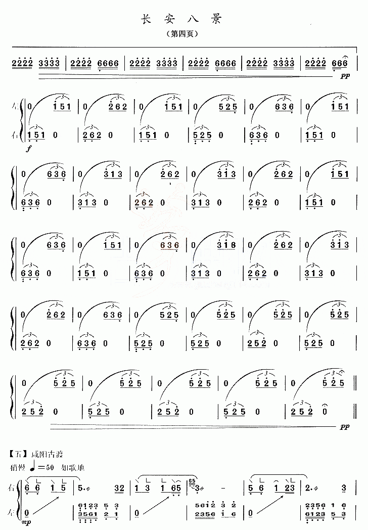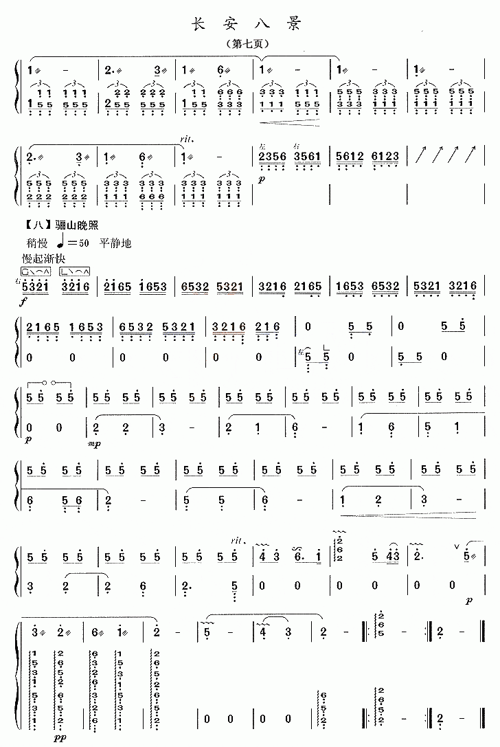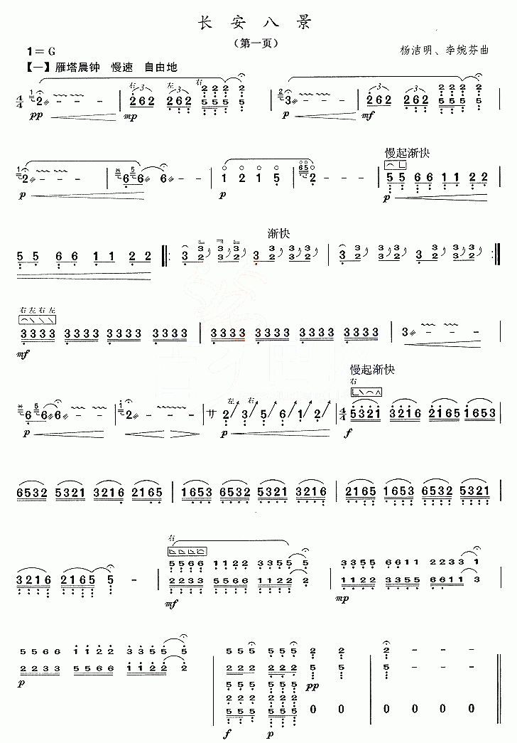 古筝谱【长安八景】简谱五线谱附歌词是乐器资源网于2016年05月24日 21:57:17整理更新,内容收录在古筝乐谱栏目;乐器资源网免费分享专业、准确、规范、高清的古筝乐谱简谱五线谱歌词等电子版资料,欢迎在线免费下载;乐器资源网无需注册会员,即可直接免费下载各类乐器学习相关资源。