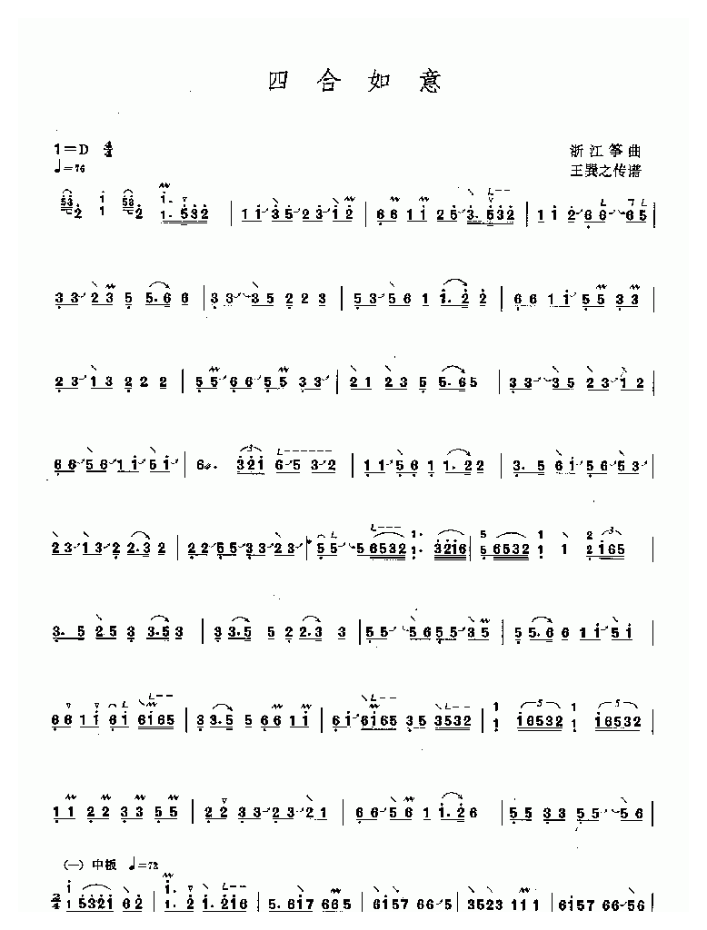 古筝曲谱【四合如意】简谱五线谱附歌词是乐器资源网于2016年04月26日 23:28:33整理更新,内容收录在古筝乐谱栏目;乐器资源网免费分享专业、准确、规范、高清的古筝乐谱简谱五线谱歌词等电子版资料,欢迎在线免费下载;乐器资源网无需注册会员,即可直接免费下载各类乐器学习相关资源。