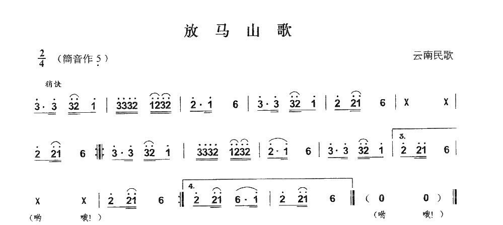 葫芦丝曲谱精选:放马山歌简谱五线谱附歌词是乐器资源网于2013年02月03日 15:21:51整理更新,内容收录在葫芦丝乐谱栏目;乐器资源网免费分享专业、准确、规范、高清的葫芦丝乐谱简谱五线谱歌词等电子版资料,欢迎在线免费下载;乐器资源网无需注册会员,即可直接免费下载各类乐器学习相关资源。