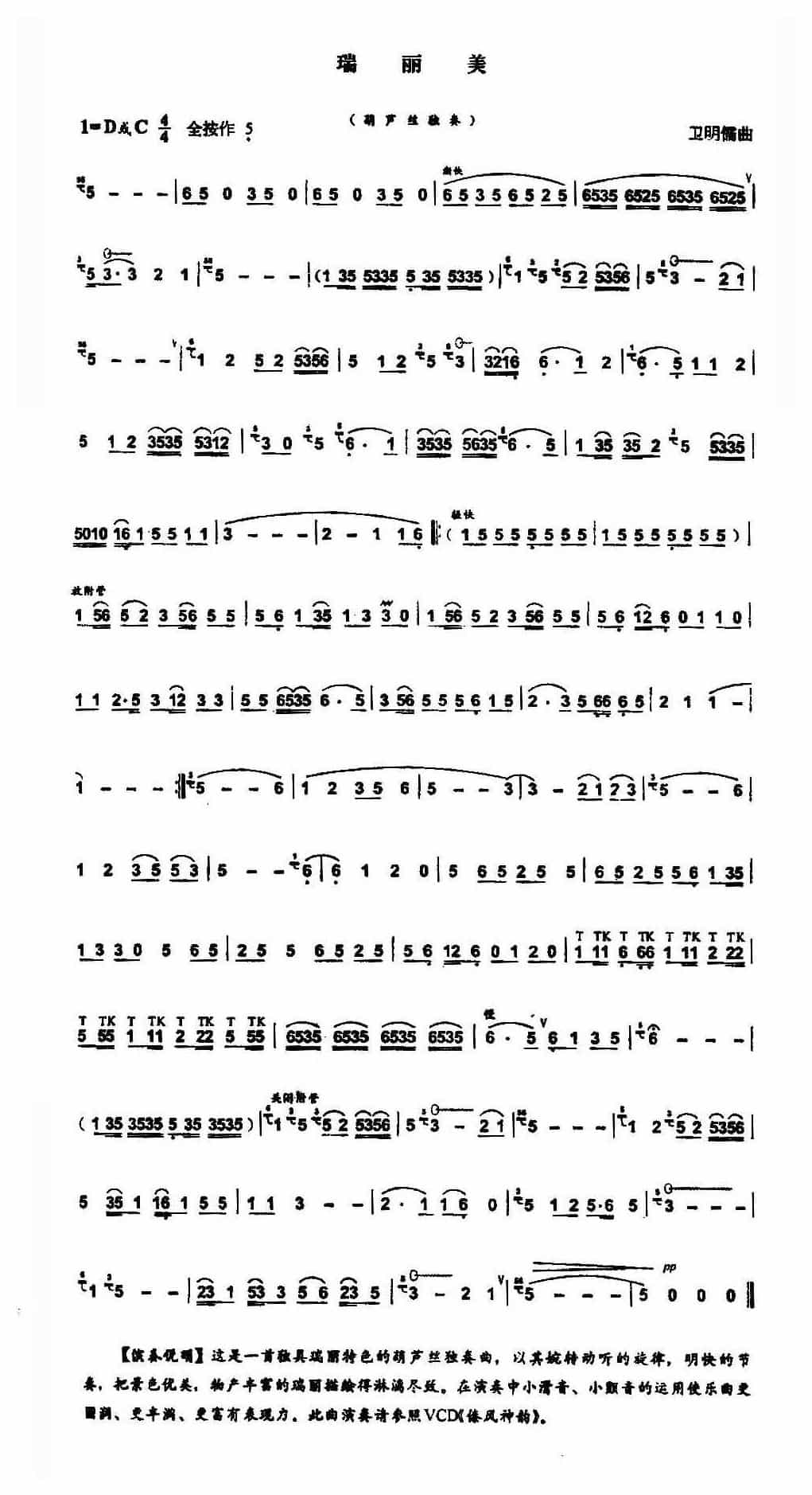 葫芦丝精选歌谱【瑞丽美】简谱五线谱附歌词是乐器资源网于2017年03月29日 22:56:32整理更新,内容收录在葫芦丝乐谱栏目;乐器资源网免费分享专业、准确、规范、高清的葫芦丝乐谱简谱五线谱歌词等电子版资料,欢迎在线免费下载;乐器资源网无需注册会员,即可直接免费下载各类乐器学习相关资源。