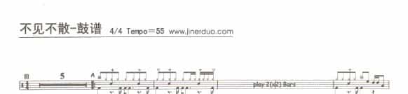 鼓谱架子鼓谱:不见不散简谱五线谱附歌词是乐器资源网于2014年06月21日 22:52:44整理更新,内容收录在爵士鼓乐谱栏目;乐器资源网免费分享专业、准确、规范、高清的爵士鼓乐谱简谱五线谱歌词等电子版资料,欢迎在线免费下载;乐器资源网无需注册会员,即可直接免费下载各类乐器学习相关资源。