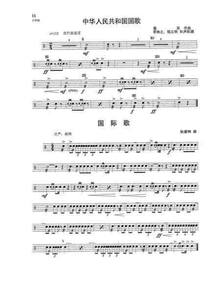 鼓谱架子鼓谱:中华人民共和国国歌、国际歌简谱五线谱附歌词是乐器资源网于2014年06月24日 14:28:05整理更新,内容收录在爵士鼓乐谱栏目;乐器资源网免费分享专业、准确、规范、高清的爵士鼓乐谱简谱五线谱歌词等电子版资料,欢迎在线免费下载;乐器资源网无需注册会员,即可直接免费下载各类乐器学习相关资源。