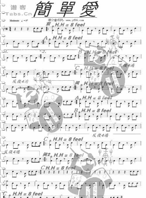 架子鼓谱:简单爱简谱五线谱附歌词是乐器资源网于2014年06月26日 14:07:37整理更新,内容收录在爵士鼓乐谱栏目;乐器资源网免费分享专业、准确、规范、高清的爵士鼓乐谱简谱五线谱歌词等电子版资料,欢迎在线免费下载;乐器资源网无需注册会员,即可直接免费下载各类乐器学习相关资源。
