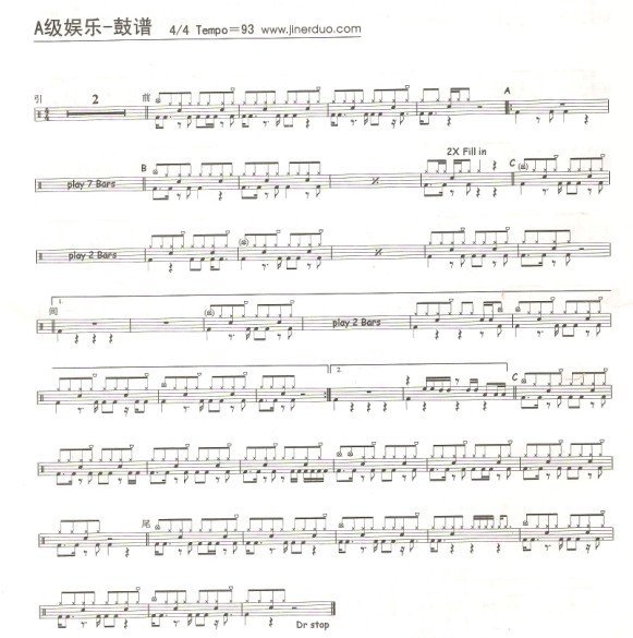鼓谱:A级娱乐简谱五线谱附歌词是乐器资源网于2014年06月26日 10:06:10整理更新,内容收录在爵士鼓乐谱栏目;乐器资源网免费分享专业、准确、规范、高清的爵士鼓乐谱简谱五线谱歌词等电子版资料,欢迎在线免费下载;乐器资源网无需注册会员,即可直接免费下载各类乐器学习相关资源。