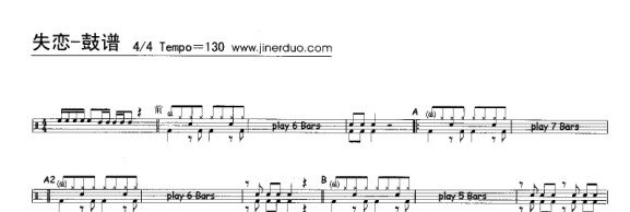 鼓谱:失恋简谱五线谱附歌词是乐器资源网于2014年06月26日 10:05:26整理更新,内容收录在爵士鼓乐谱栏目;乐器资源网免费分享专业、准确、规范、高清的爵士鼓乐谱简谱五线谱歌词等电子版资料,欢迎在线免费下载;乐器资源网无需注册会员,即可直接免费下载各类乐器学习相关资源。