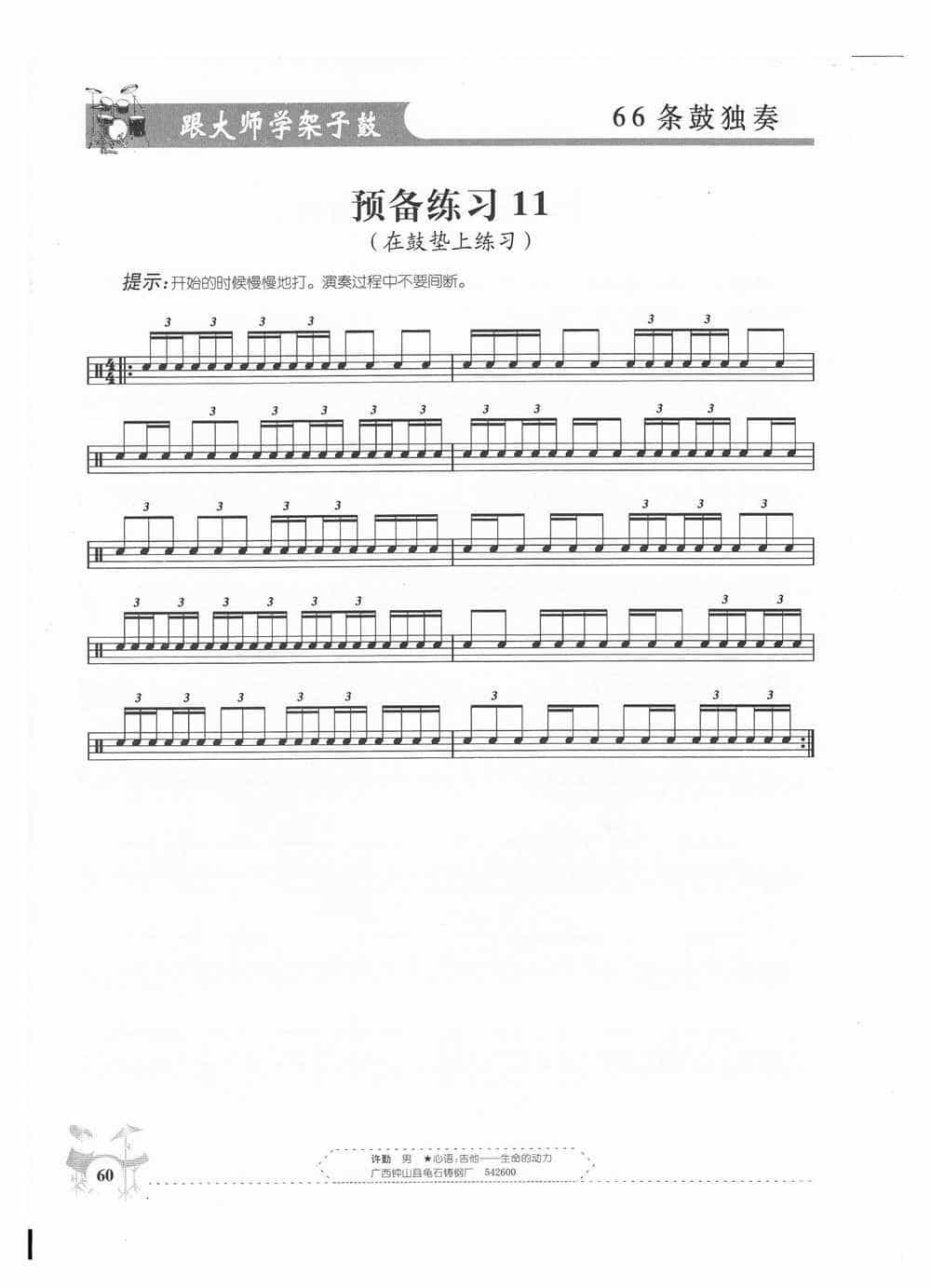 练得熟练之后大家可将它们重音移位,手脚互换等等,作展开练习,反正大家都知道,打击乐这种东西深究下去是没个尽头的,一番排列组合就足以把你弄得晕乎乎的。下面就给大家一一道来。 ...