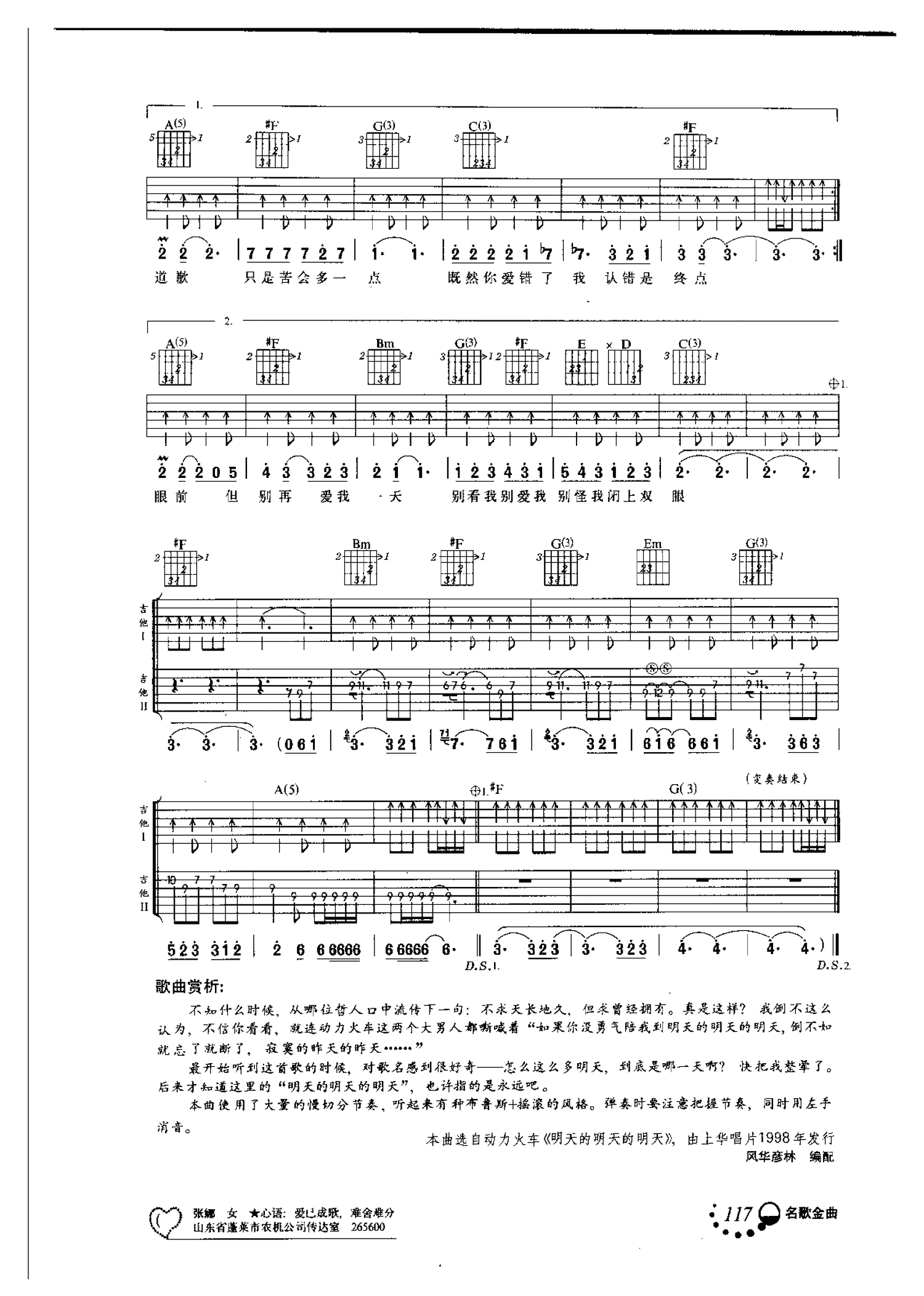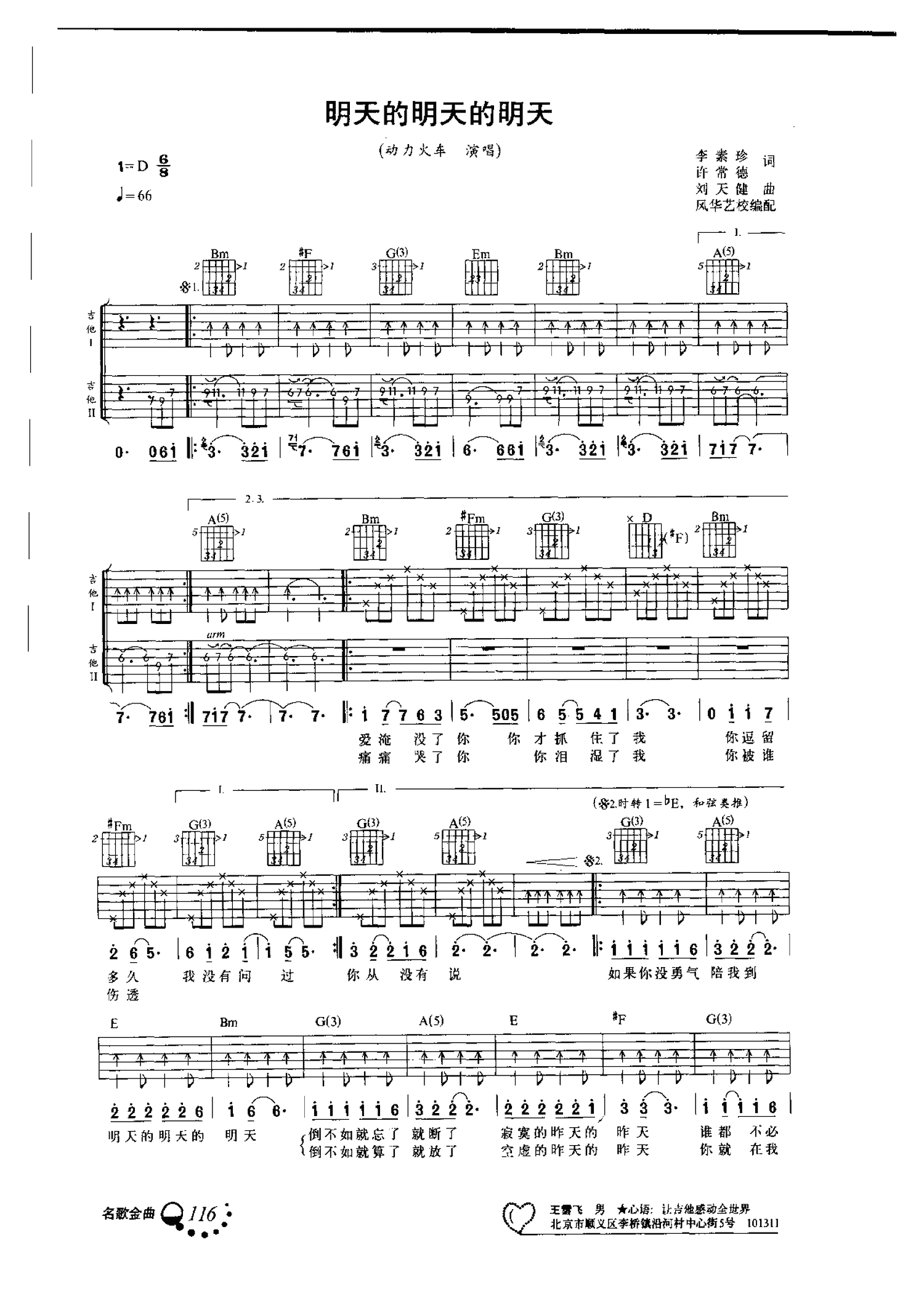 动力火车吉他谱《明天的明天的明天》高清吉他弹唱名歌金曲简谱五线谱附歌词是乐器资源网于2014年07月04日 16:22:51整理更新,内容收录在吉他乐谱栏目;乐器资源网免费分享专业、准确、规范、高清的吉他乐谱简谱五线谱歌词等电子版资料,欢迎在线免费下载;乐器资源网无需注册会员,即可直接免费下载各类乐器学习相关资源。