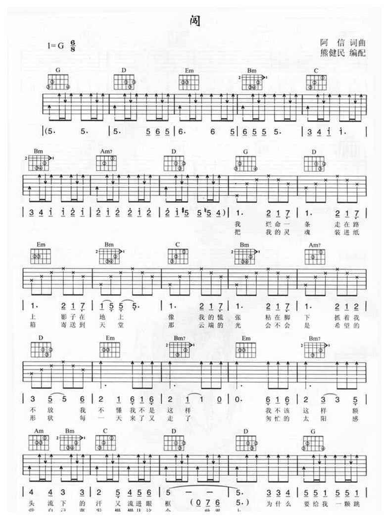 五月天吉他谱【闯】G调指弹吉他六线谱简谱五线谱附歌词是乐器资源网于2016年04月20日 18:14:16整理更新,内容收录在吉他乐谱栏目;乐器资源网免费分享专业、准确、规范、高清的吉他乐谱简谱五线谱歌词等电子版资料,欢迎在线免费下载;乐器资源网无需注册会员,即可直接免费下载各类乐器学习相关资源。