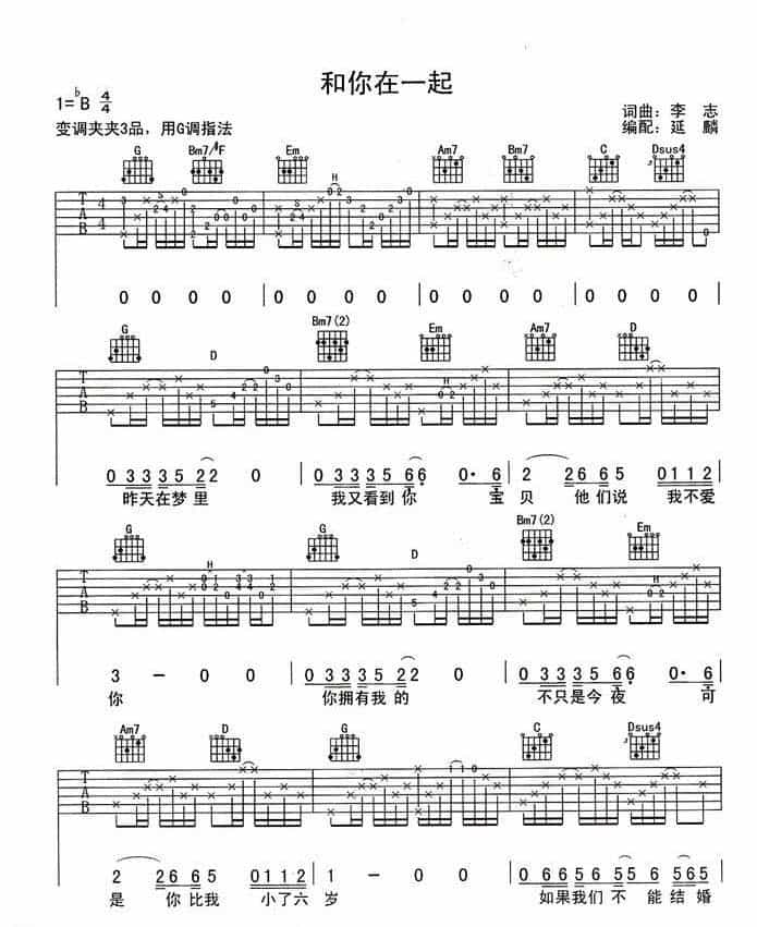 李志经典歌曲吉他谱 和你在一起简谱五线谱附歌词是乐器资源网于2014年06月23日 16:38:12整理更新,内容收录在吉他乐谱栏目;乐器资源网免费分享专业、准确、规范、高清的吉他乐谱简谱五线谱歌词等电子版资料,欢迎在线免费下载;乐器资源网无需注册会员,即可直接免费下载各类乐器学习相关资源。