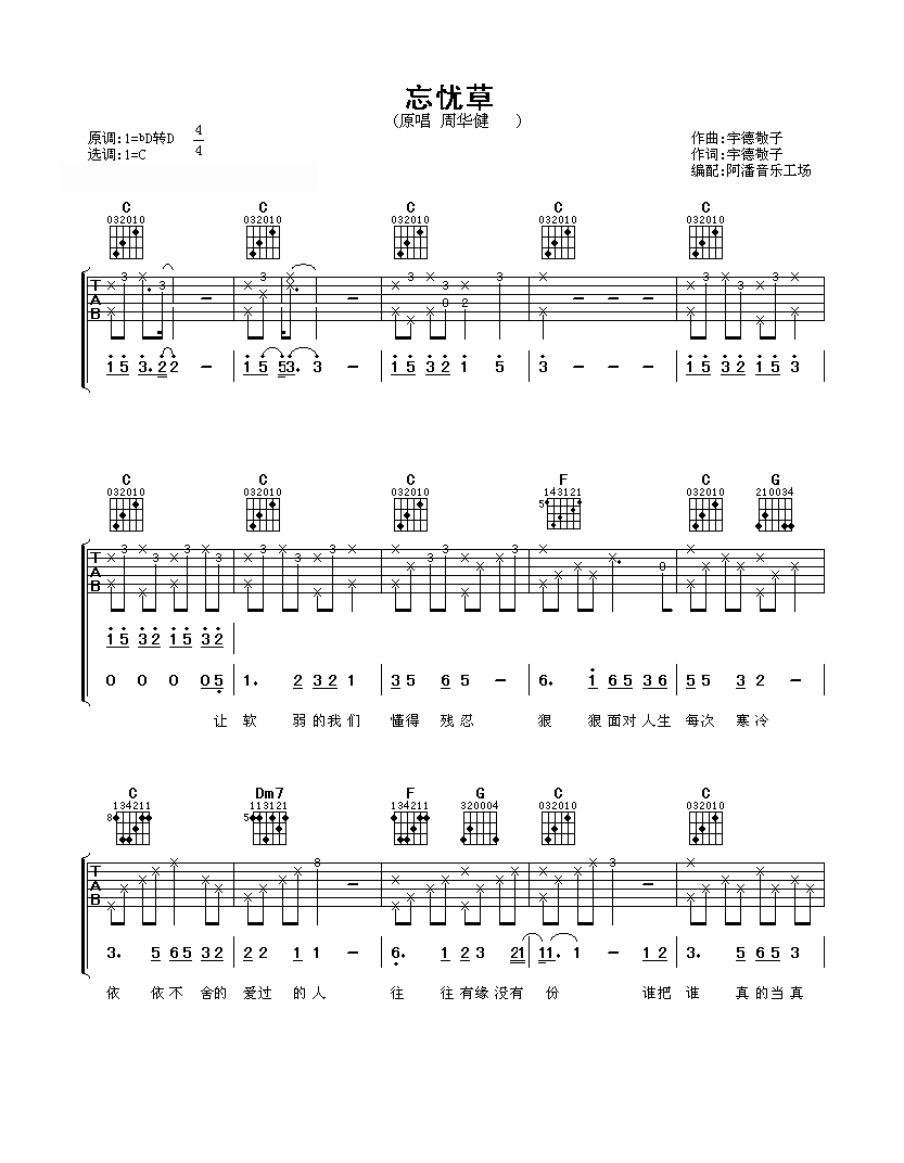 忘忧草吉他谱 周华健忘忧草六线谱高清版简谱五线谱附歌词是乐器资源网于2016年07月27日 21:54:56整理更新,内容收录在吉他乐谱栏目;乐器资源网免费分享专业、准确、规范、高清的吉他乐谱简谱五线谱歌词等电子版资料,欢迎在线免费下载;乐器资源网无需注册会员,即可直接免费下载各类乐器学习相关资源。
