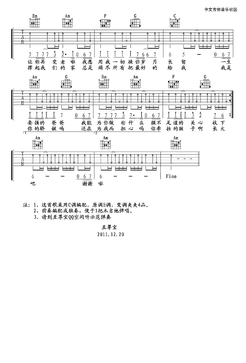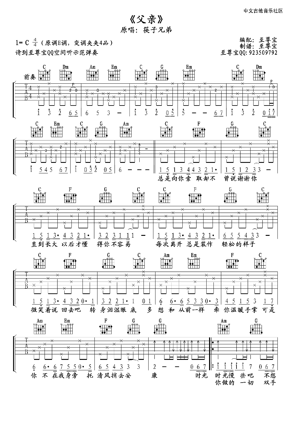 【2015热门吉他歌曲谱排行榜】筷子兄弟 父亲吉他谱 C调扫弦版简谱五线谱附歌词是乐器资源网于2015年06月28日 10:32:53整理更新,内容收录在吉他乐谱栏目;乐器资源网免费分享专业、准确、规范、高清的吉他乐谱简谱五线谱歌词等电子版资料,欢迎在线免费下载;乐器资源网无需注册会员,即可直接免费下载各类乐器学习相关资源。