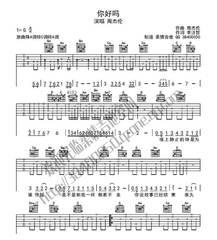 周杰伦吉他谱【你好吗】吉他谱G调简谱五线谱附歌词是乐器资源网于2016年03月31日 18:46:29整理更新,内容收录在吉他乐谱栏目;乐器资源网免费分享专业、准确、规范、高清的吉他乐谱简谱五线谱歌词等电子版资料,欢迎在线免费下载;乐器资源网无需注册会员,即可直接免费下载各类乐器学习相关资源。