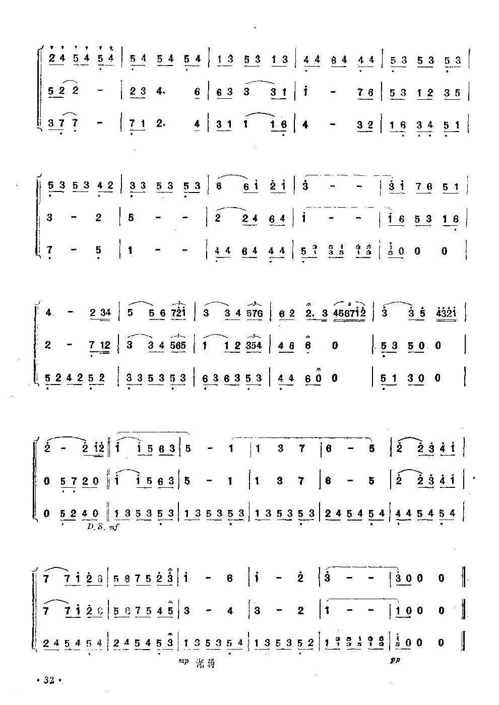 曲谱简介:世界名曲,程明德编配,难易程度中等偏下。