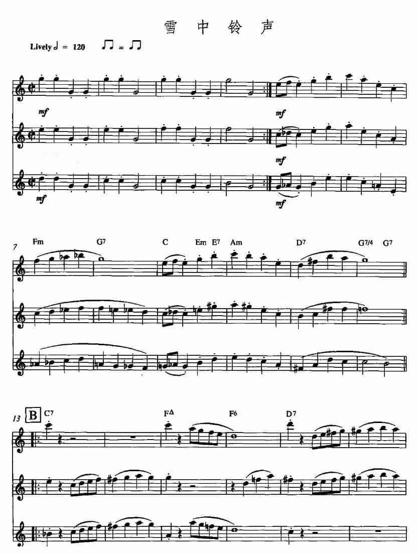 口琴三重奏【雪中铃声】曲谱简谱五线谱附歌词是乐器资源网于2016年03月02日 22:53:47整理更新,内容收录在口琴乐谱栏目;乐器资源网免费分享专业、准确、规范、高清的口琴乐谱简谱五线谱歌词等电子版资料,欢迎在线免费下载;乐器资源网无需注册会员,即可直接免费下载各类乐器学习相关资源。