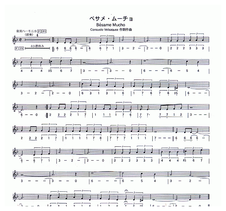 日本乐曲,consuelo belazquez曲,五线谱与简谱对照,难度低上