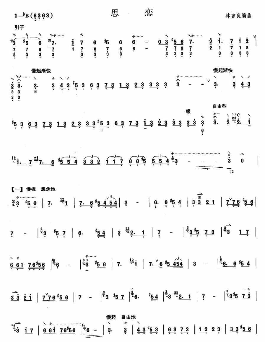 柳琴考级曲谱【柳琴八级:思恋】