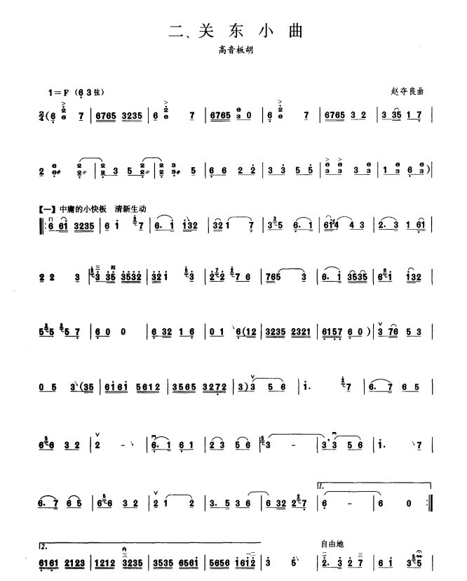 板胡考级曲谱《关东小曲》七级