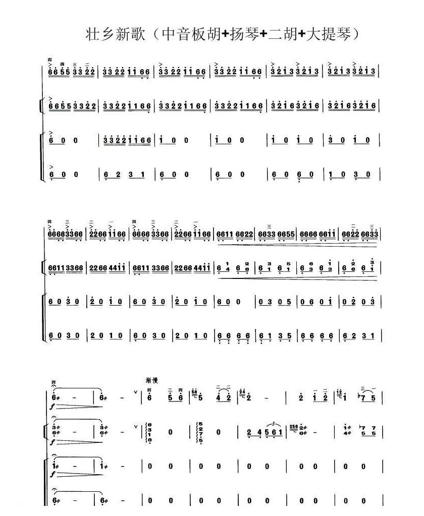 中音板胡曲谱《壮乡新歌》扬琴简谱
