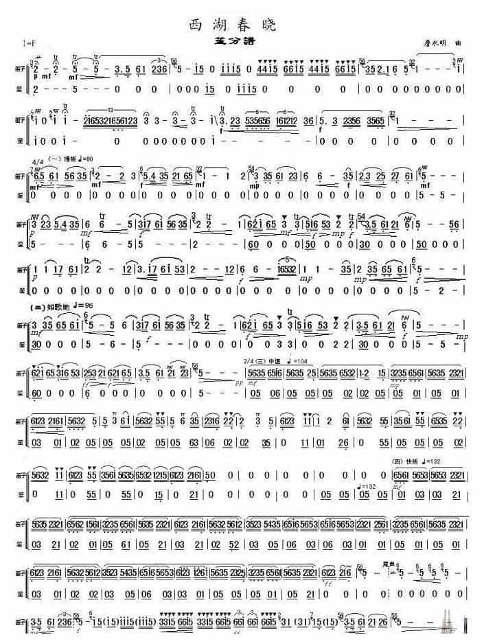 笙谱【西湖春晓】笙分谱