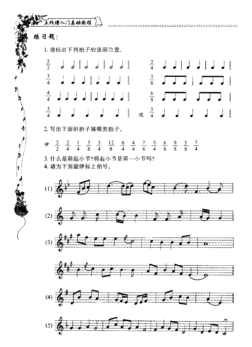 五线谱基础教程 第五章 有关测试与练习 一级模拟训练【一、听一听】...