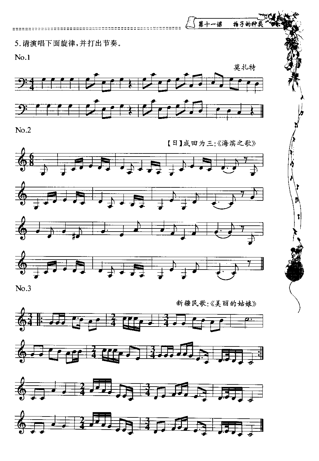 五线谱基础教程 第五章 有关测试与练习 三级模拟训练【一、听一听】