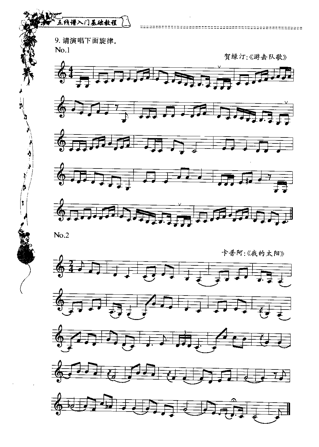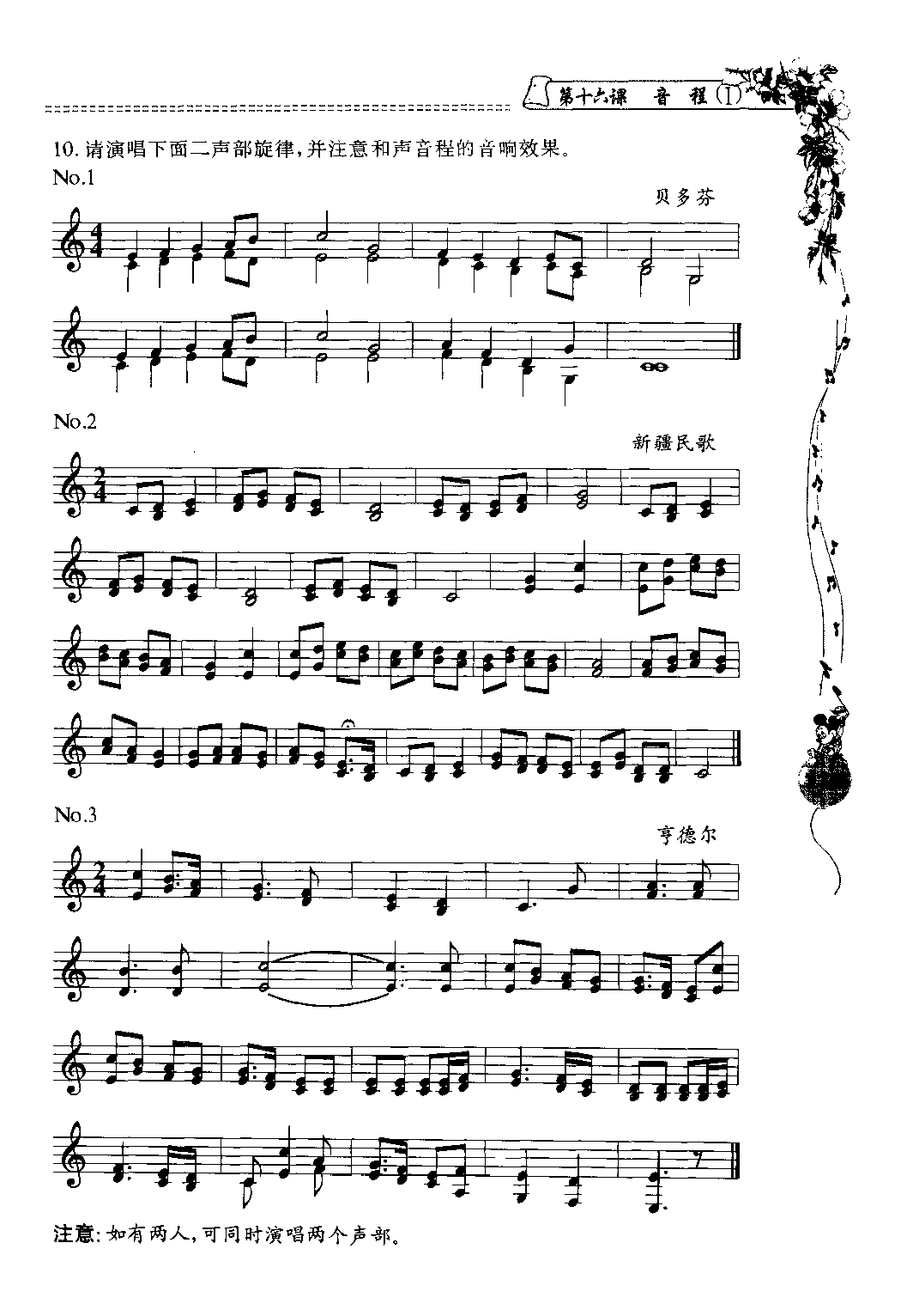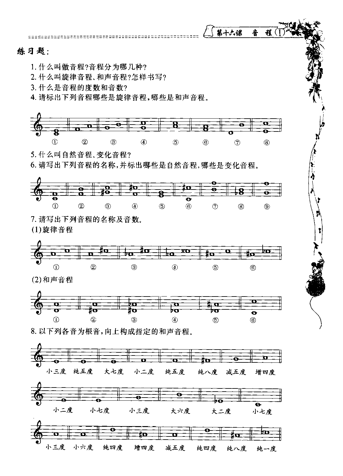 五线谱基础教程 第五章 有关测试与练习 三级模拟训练【一、听一听】 一、听一听 1.听辩大小调音阶 2.听辩、听写音级 3.听辩、听写音程 4.听辩、听写和...