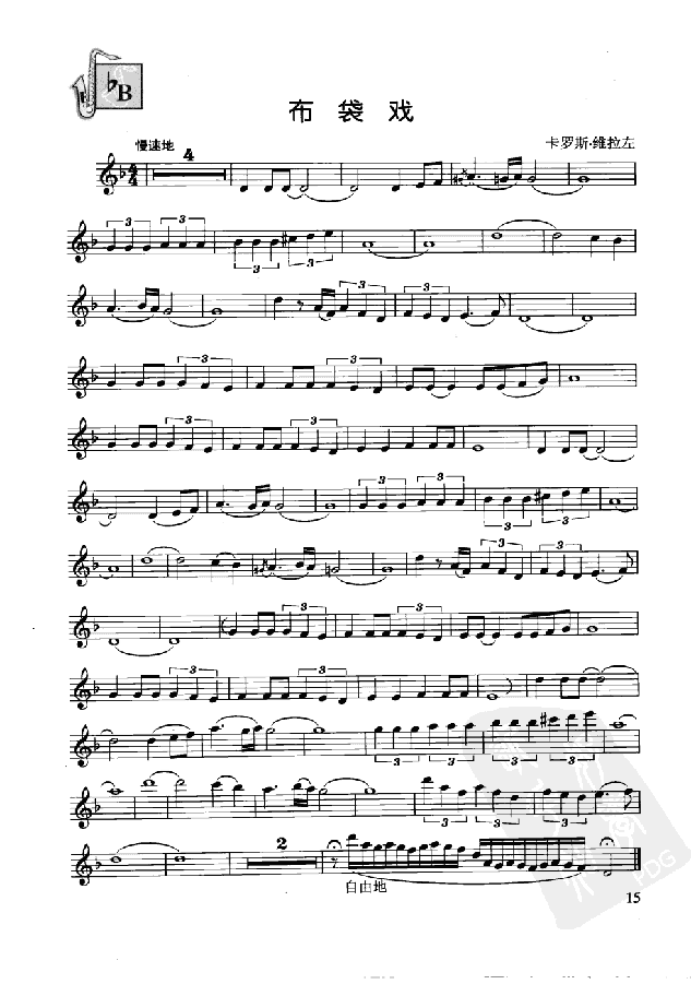 萨克斯通俗名曲谱【布袋戏】降B调简谱五线谱附歌词是乐器资源网于2017年03月27日 18:02:02整理更新,内容收录在萨克斯乐谱栏目;乐器资源网免费分享专业、准确、规范、高清的萨克斯乐谱简谱五线谱歌词等电子版资料,欢迎在线免费下载;乐器资源网无需注册会员,即可直接免费下载各类乐器学习相关资源。