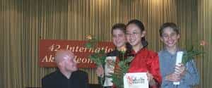 记 者:由于您的辛勤耕耘,目前您的学生进步很快,在五月初举办的“海滋曼杯”东方青年钢琴、键盘乐器大奖赛中,表现十分突出,尤其通过近两年的国际大赛证明,您的学生已成为冲击国际大奖不可或缺的力量,中国人异军突起,打破了欧洲人一统天下的手风琴比赛格局,为中国人争了光!十分感谢您的采访,并祝愿您的学生在下一次国际大赛上获奖,为中国争光!