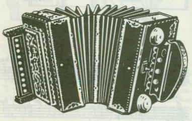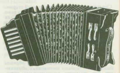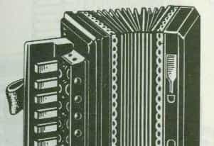 在1880年左右沃洛格达市及其周边地区产生了一种手风琴叫沃洛格达手风琴(如右图所示)。这种手风琴右手只有一排键,12个键板,每一个键按下去同时有三(四)个簧片震动(见下谱例)。